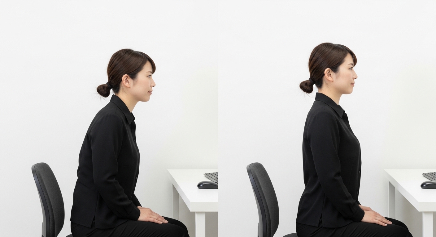これらが重なることで、背中が丸まり「頭が前に出る姿勢」になります。